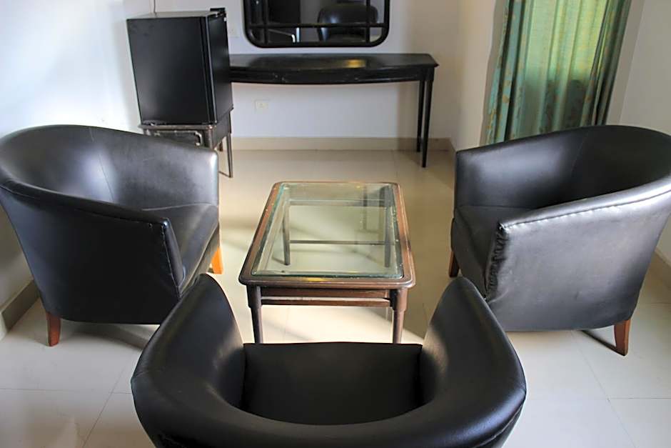 Fitted with air conditioning and a fan, this suite features cable TV and an attached bathroom with hot and cold shower facilities. A wardrobe and a seating area are included.